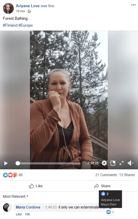 Raving lunatic and Jew-hater Ariyana Love has gone on yet another Facebook video rant against the Jooooooos. Even by antisemitic standards, it is nutty and horrific – containing almost every antisemitic trope in the book and blaming us for the coronavirus, among other things.